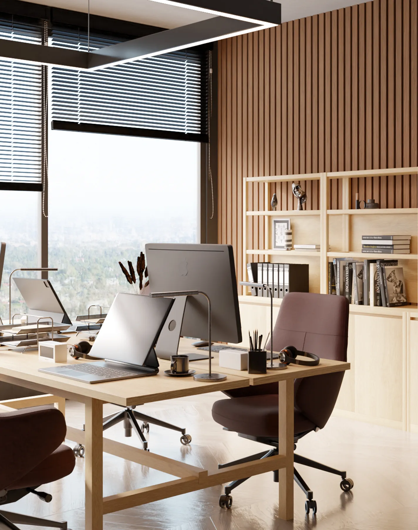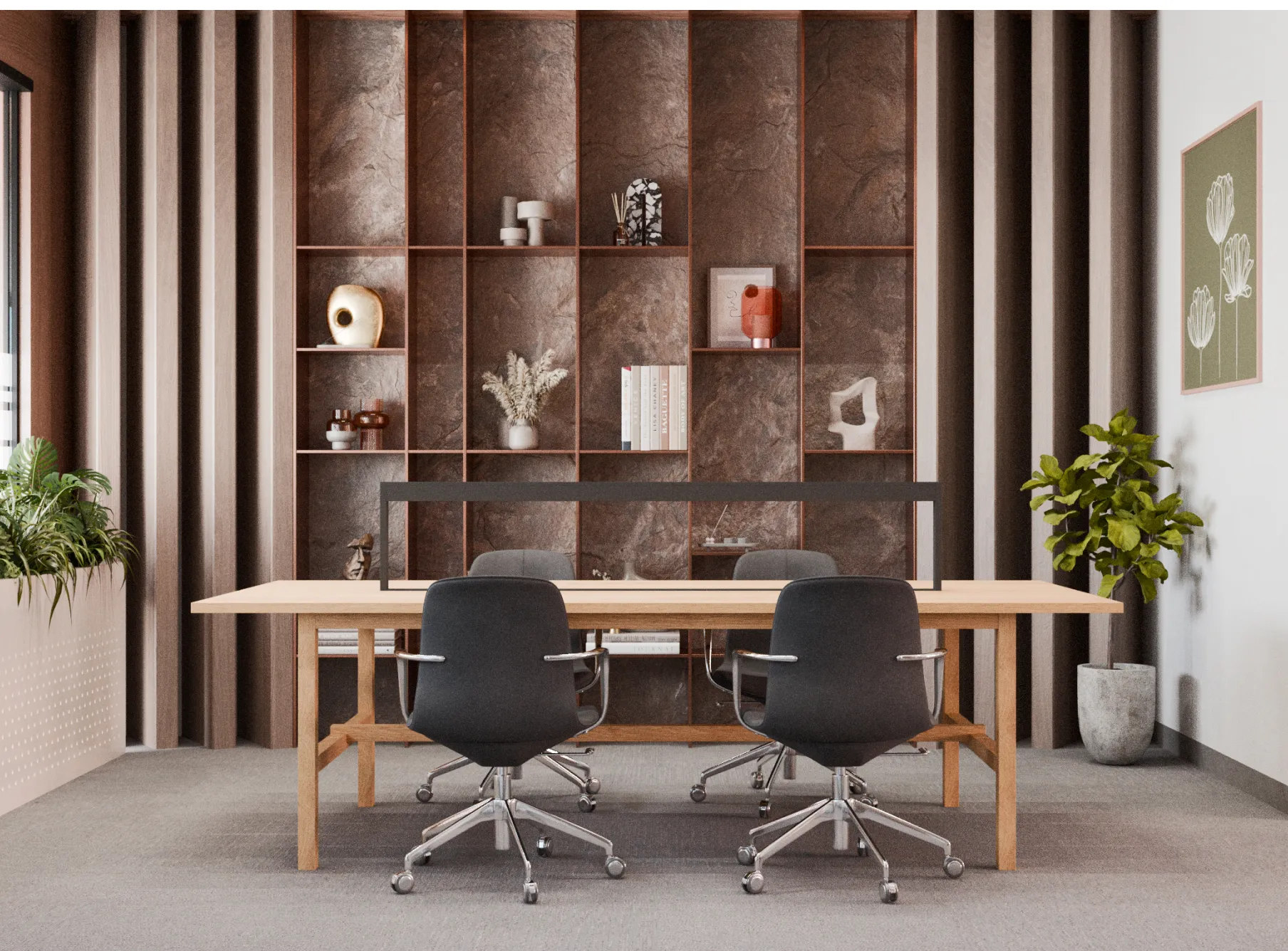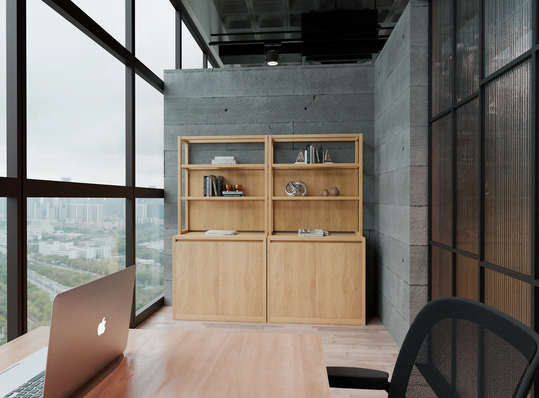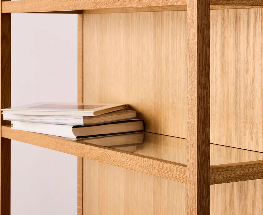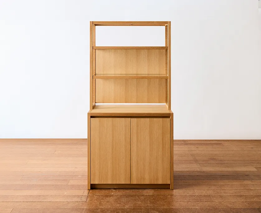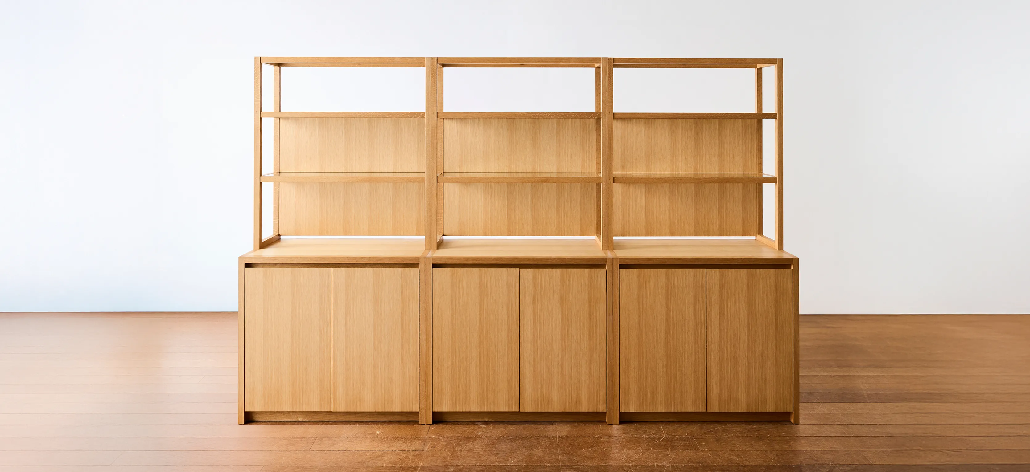 天然木などの上質な素材と丁寧な仕上げにより、シェルフはオフィスという環境に自然と溶け込む「うつくしい佇まい」を放ちます。目に見えない構造の細部に至るまで、熟練の職人の技術とこだわりが貫かれ、細部の丁寧な処理や接合部の精度が、雑多になりがちなオフィス空間に静けさと品格をもたらします。