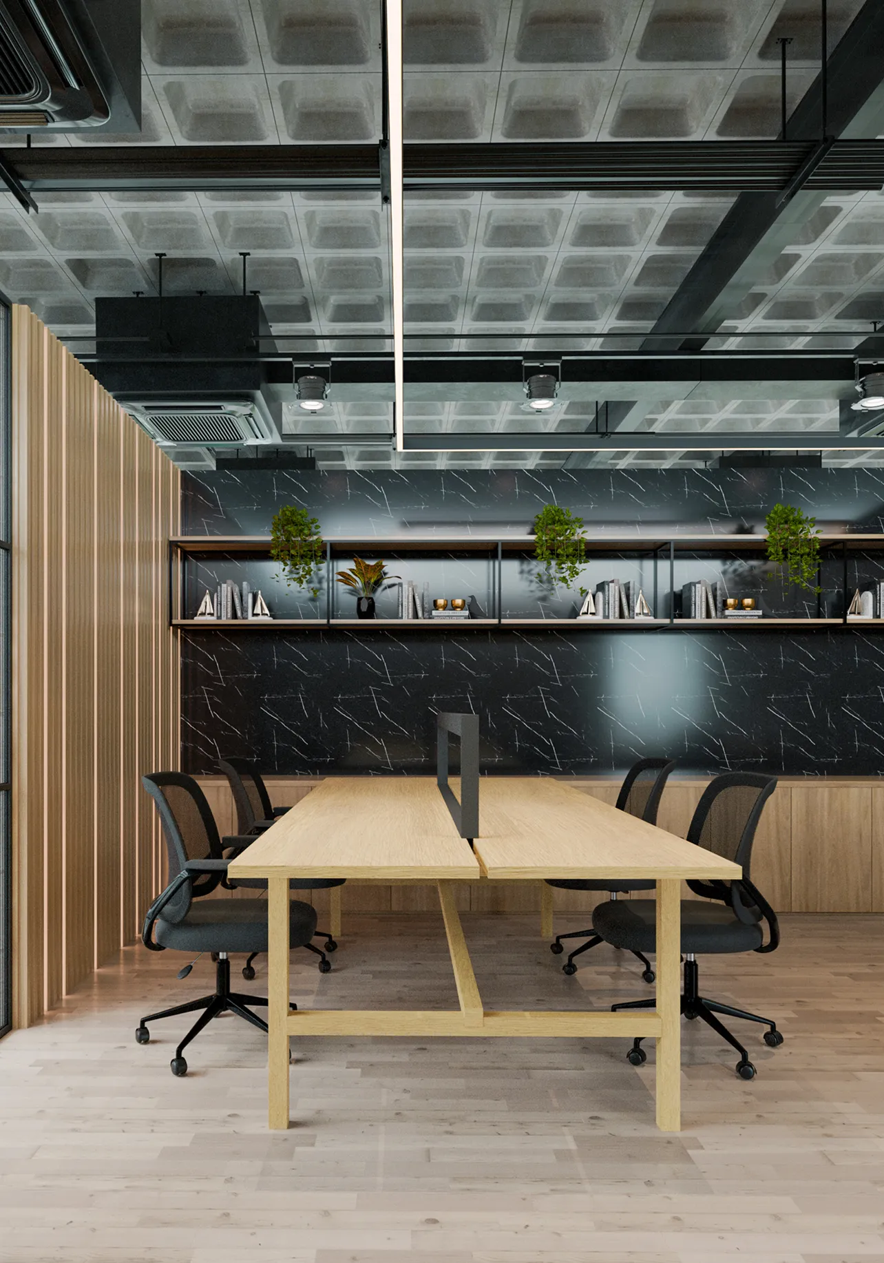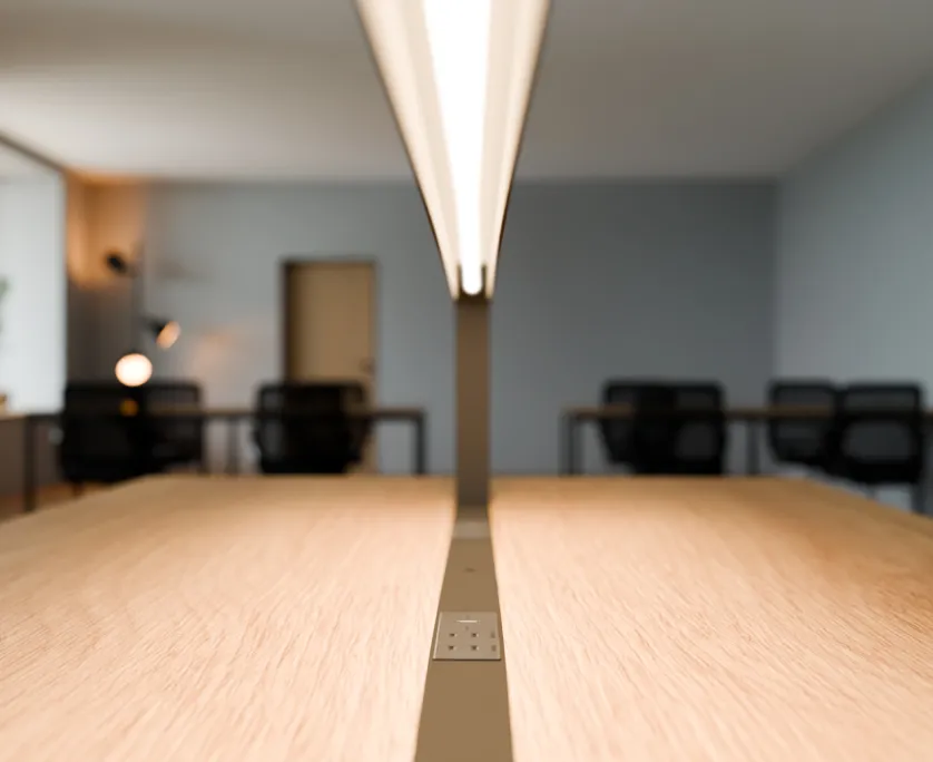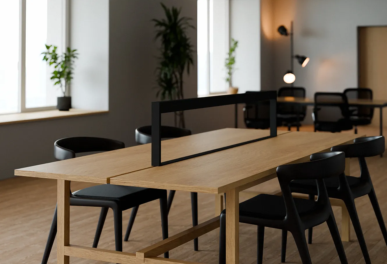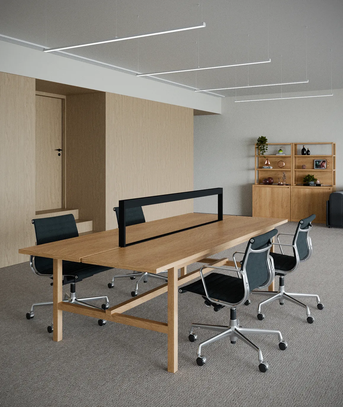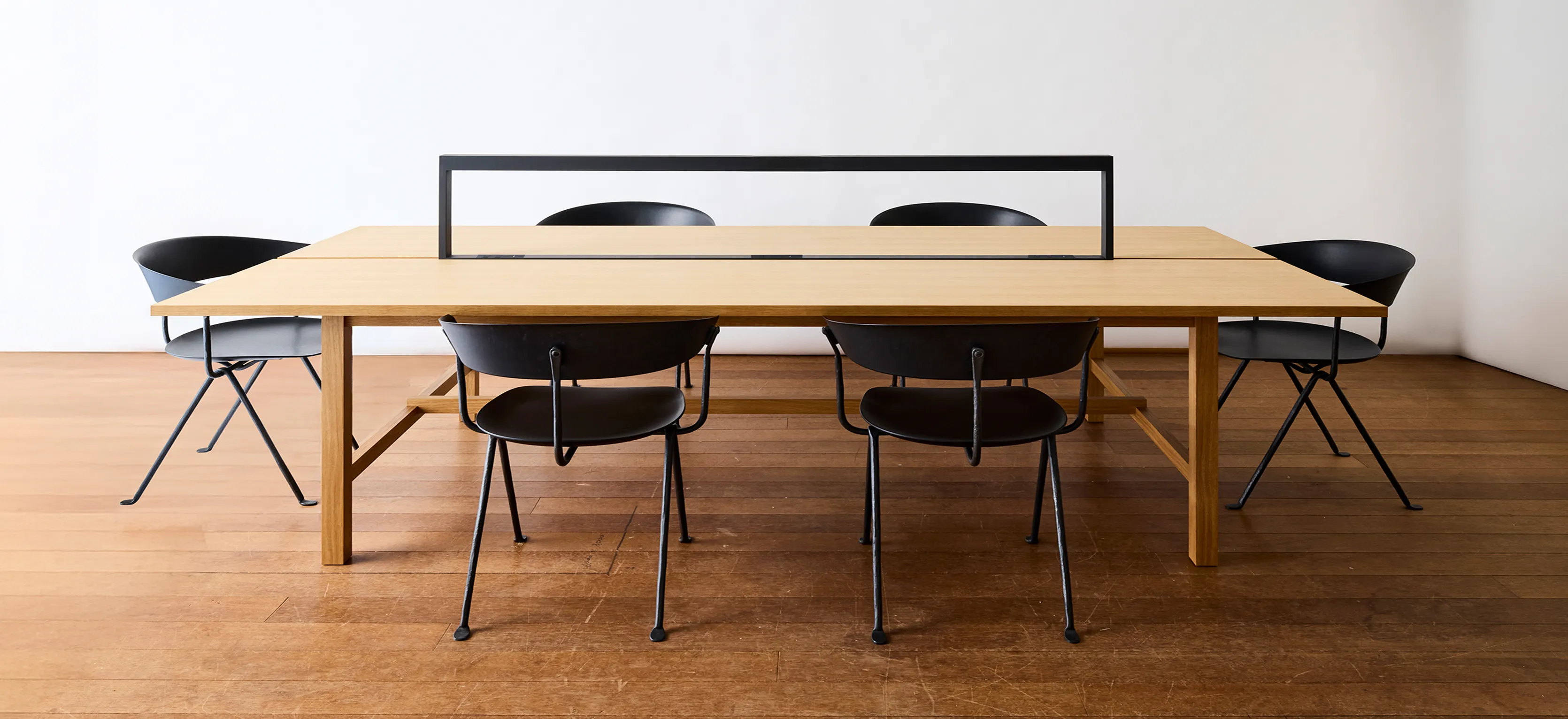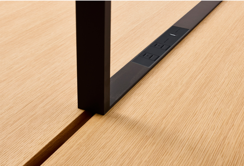 単体で多人数作業に対応するフレキシブルなワーキングデスクです。内蔵電源とスマートな配線ルートにより、デスク周りは常にすっきり。別途の照明計画なしで、働く環境を手軽に構築できます。堅牢な構造と上質な仕上げで、長年の使用にも耐えうる耐久性を持ち、洗練された「うつくしさ」を提供します。