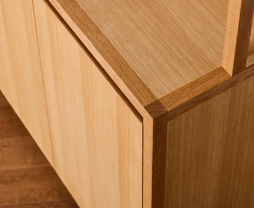 天然木など厳選素材の上質感を活かした仕上げを施し、心地よい手触りを追求。木の呼吸を妨げないオイルフィニッシュ処理により、使い込むほどに味わい深い経年変化の魅力を楽しめます。長く愛される家具であってほしいという三上工作所の願いです。