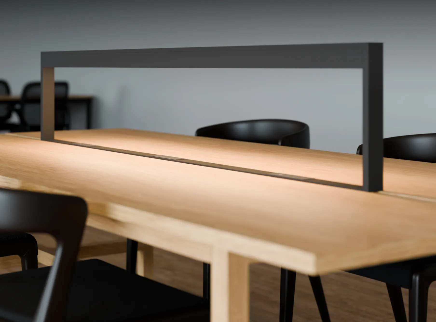 デスクに照明や電源が内蔵されているため、オフィスの照明計画を考慮することなく、手軽に作業環境を確立できます。作業に必要な光がデスクの一部として組み込まれているため、オフィスレイアウトの自由度が飛躍的に向上。視覚的なノイズを徹底的に排除したシンプルなデザインです。
